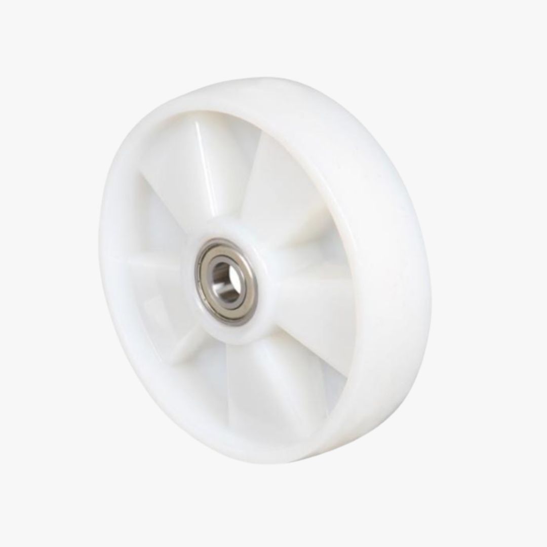RODA RDNT - Nylon para Transpaleteiras - Direcional. Dureza: 70 Shore D. (-40ºC a +110ºC). Produzidas em injeção única com nylon poliamida 6.0 de alta qualidade, são projetadas para montagem como rodas direcionais em transpaleteiras. São leves, possuem ótima resistência mecânica, rodam com muita facilidade exigindo menor esforço para manobras e movimentação, suportam altas cargas e não deformam sob carga estática. Ideal para aplicações em ambientes úmidos, são resistentes a graxas, óleos, sais e alguns tipos de ácidos. Fabricadas com material reciclável.