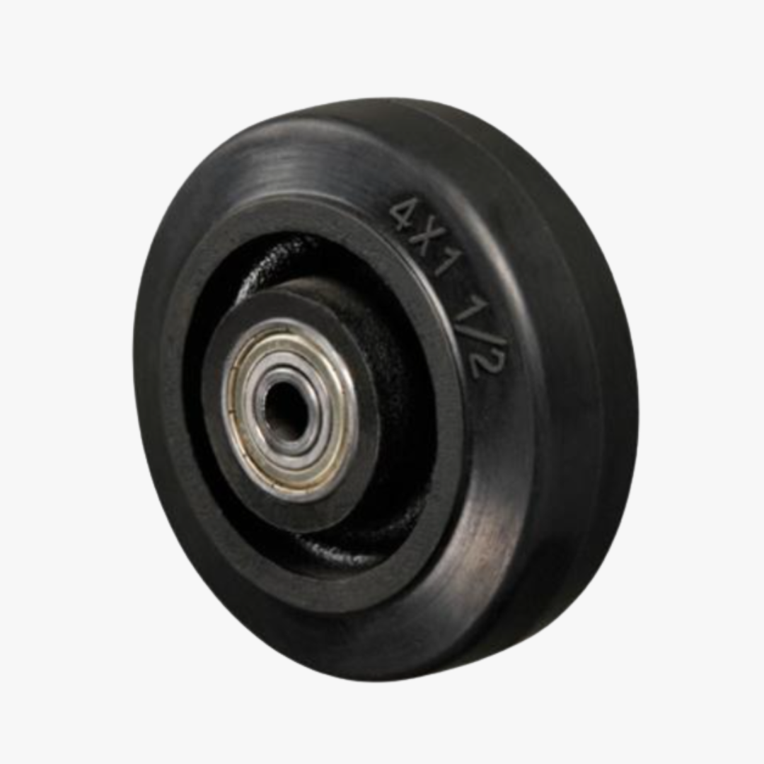 Roda B: Borracha Moldada. Dureza: 80 Shore A. (-20ºC e +70ºC). Produzidas com revestimento de borracha moldada vulcanizada em núcleo de ferro fundido cinzento. Rodam com suavidade e baixo nível de ruídos, absorvem choques e vibrações. São resistentes a abrasão e produtos químicos. Podem ser utilizadas em velocidades de até 4km/h.