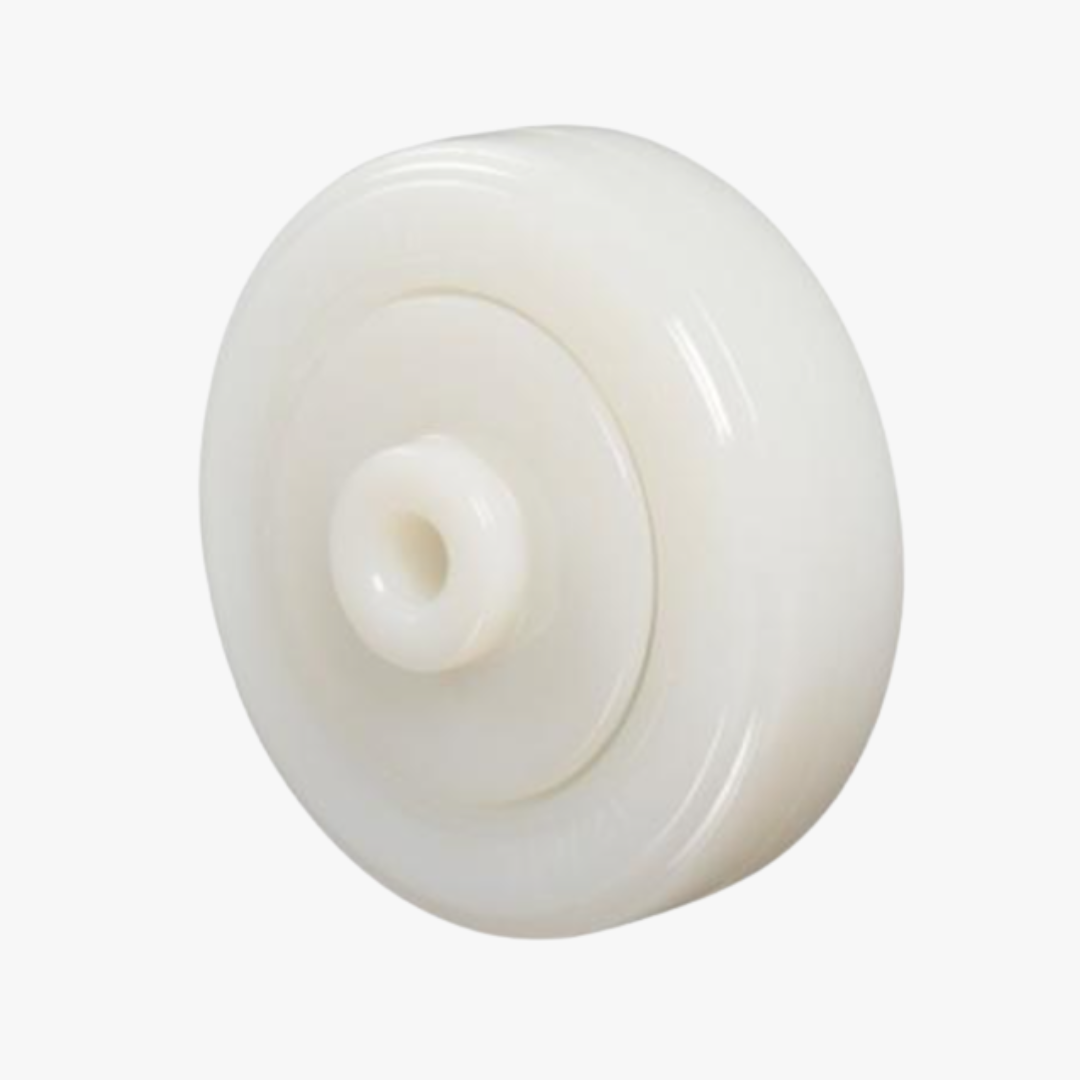 Roda NT: Nylon Técnico. Dureza: 75 Shore D. (-40ºC a +110ºC). Produzidas com revestimento e núcleo em nylon poliamida 6.0 de alta qualidade. São leves e possuem ótima resistência mecânica, rodam com muita facilidade exigindo menor esforço para manobras e movimentação. Ideais para aplicações em ambientes úmidos, são resistente as graxas, óleos, sais e alguns tipos de ácidos. Fabricadas com material reciclável. A velocidade de trabalho indicada é até 4 km/h.