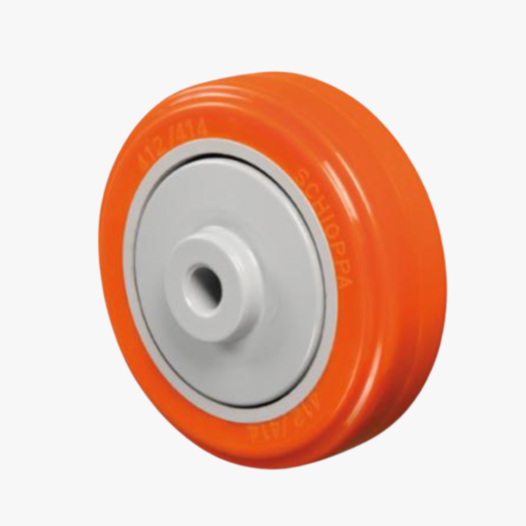 Roda UP: Poliuretano Termoplástico. Dureza: 90 Shore A. (-20ºC a +70ºC). Produzidas com revestimento em poliuretano termoplástico elastollan e núcleo em polipropileno copolímero recicláveis. Ideais para quem procura excelente capacidade de carga alinhada a uma ótima proteção do piso com baixo ruído no deslocamento, proporcionam excelente resistência a abrasão e impactos. Resistentes a graxas, óleos minerais e alguns ácidos. A velocidade de trabalho indicada é até 4 km/h.