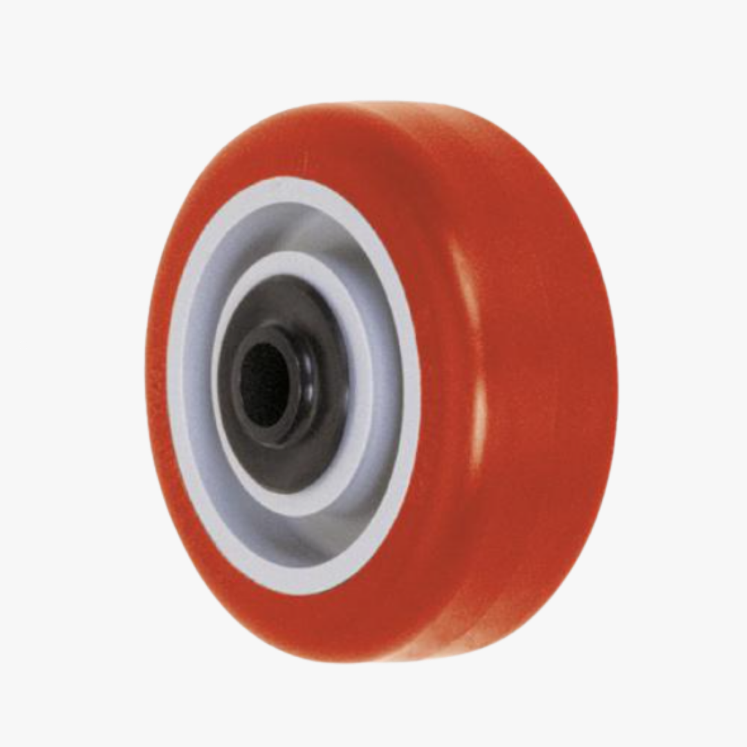 Roda UP: Poliuretano Termoplástico. Dureza: 90 Shore A. (-20ºC a +70ºC). Produzidas com revestimento em poliuretano termoplástico elastollan e núcleo em polipropileno copolímero recicláveis. Ideais para quem procura excelente capacidade de carga alinhada a uma ótima proteção do piso com baixo ruído no deslocamento, proporcionam excelente resistência a abrasão e impactos. Resistentes a graxas, óleos minerais e alguns ácidos. A velocidade de trabalho indicada é até 4 km/h.