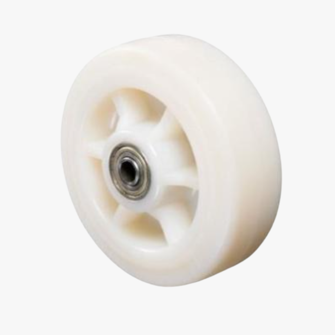 Roda NT: Nylon Técnico. Dureza: 75 Shore D. (-40ºC a +110ºC). Produzidas com revestimento e núcleo em nylon poliamida 6.0 de alta qualidade. São leves e possuem ótima resistência mecânica, rodam com muita facilidade exigindo menor esforço para manobras e movimentação. Ideais para aplicações em ambientes úmidos, são resistente as graxas, óleos, sais e alguns tipos de ácidos. Fabricadas com material reciclável. A velocidade de trabalho indicada é até 4 km/h.