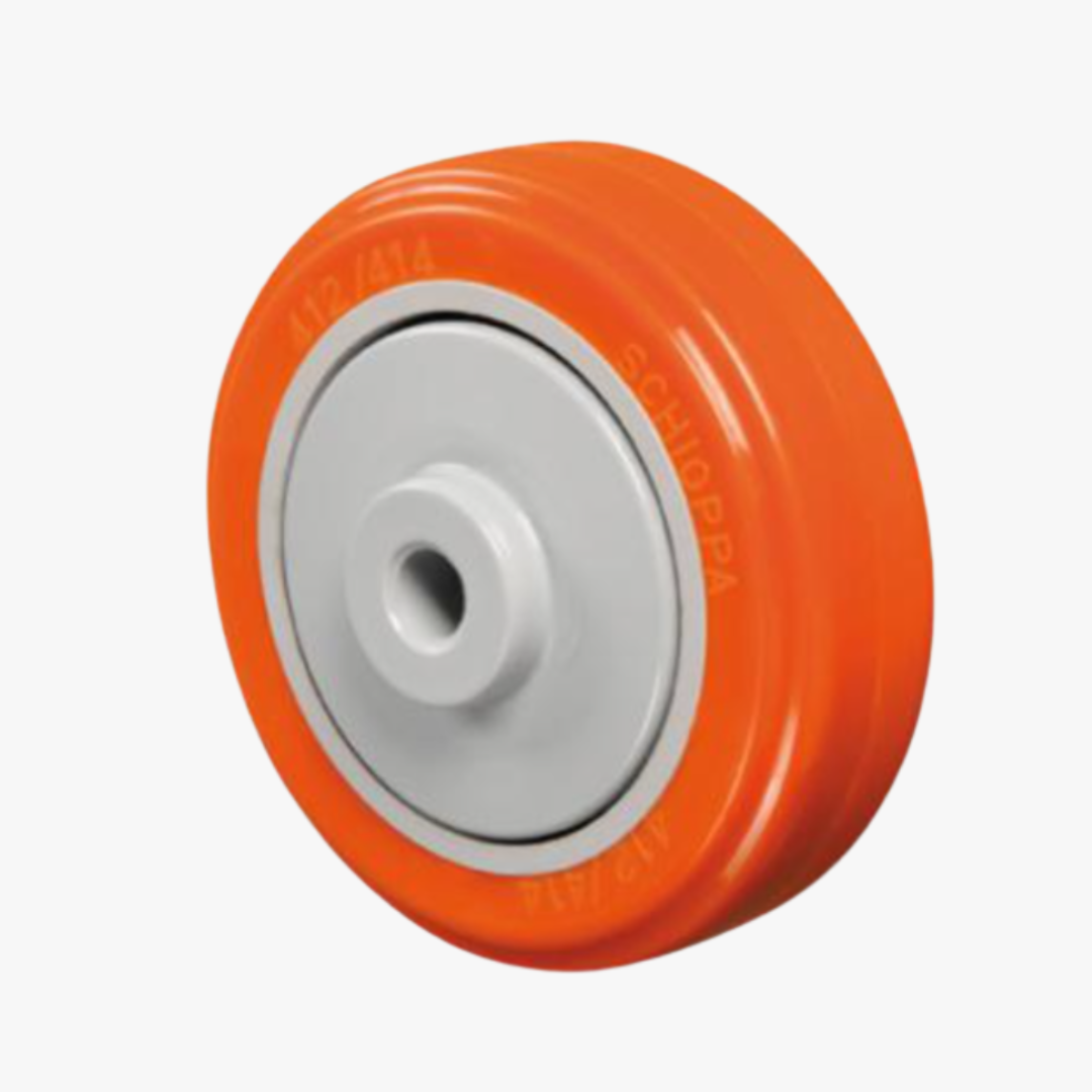 Roda UP: Poliuretano Termoplástico. Dureza: 90 Shore A. (-20ºC a +70ºC). Produzidas com revestimento em poliuretano termoplástico elastollan e núcleo em polipropileno copolímero recicláveis. Ideais para quem procura excelente capacidade de carga alinhada a uma ótima proteção do piso com baixo ruído no deslocamento, proporcionam excelente resistência a abrasão e impactos. Resistentes a graxas, óleos minerais e alguns ácidos. A velocidade de trabalho indicada é até 4 km/h.