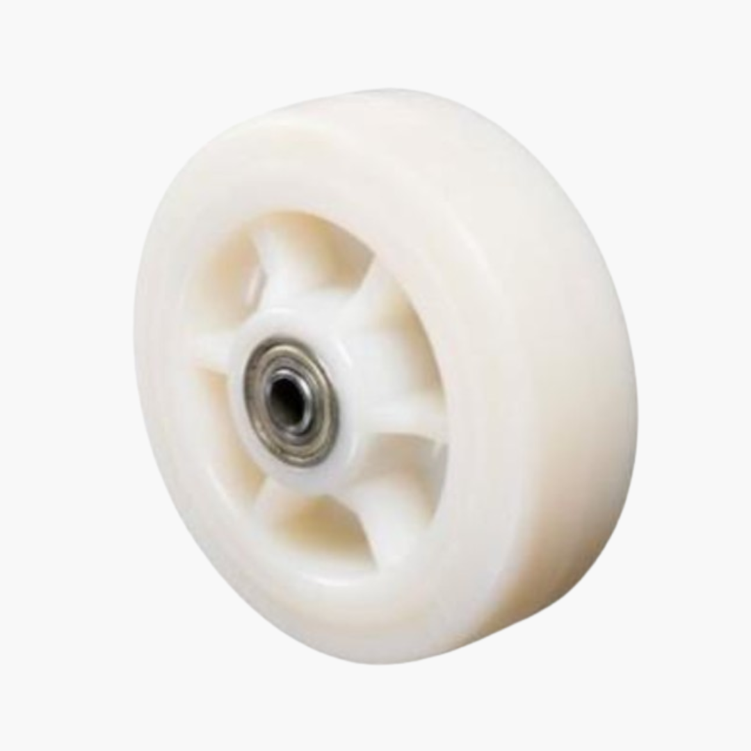 Roda NT: Nylon Técnico. Dureza: 75 Shore D. (-40ºC a +110ºC). Produzidas com revestimento e núcleo em nylon poliamida 6.0 de alta qualidade. São leves e possuem ótima resistência mecânica, rodam com muita facilidade exigindo menor esforço para manobras e movimentação. Ideais para aplicações em ambientes úmidos, são resistente as graxas, óleos, sais e alguns tipos de ácidos. Fabricadas com material reciclável. A velocidade de trabalho indicada é até 4 km/h.