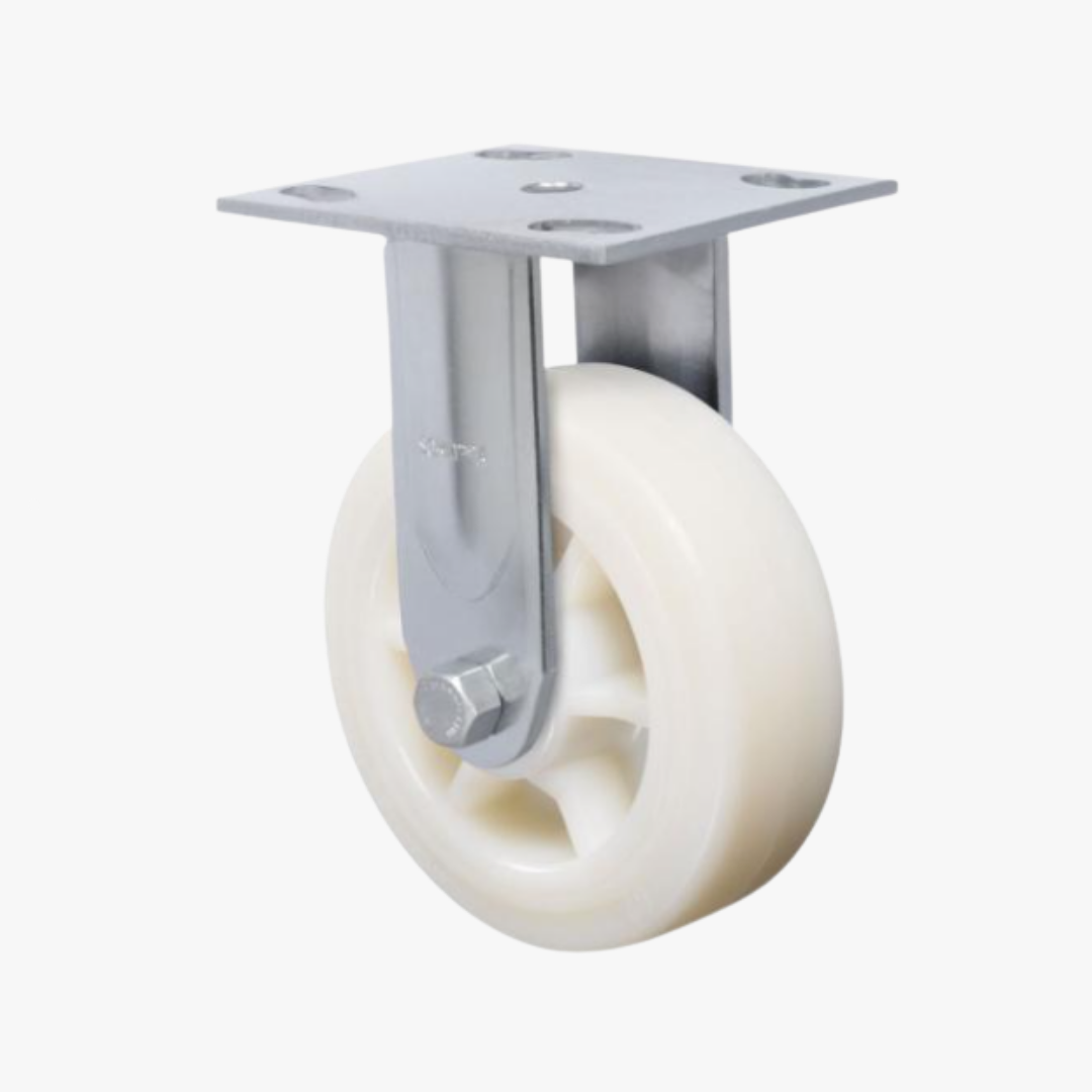 Roda NT: Nylon Técnico. Dureza: 75 Shore D. (-40ºC a +110ºC). Produzidas com revestimento e núcleo em nylon poliamida 6.0 de alta qualidade. São leves e possuem ótima resistência mecânica, rodam com muita facilidade exigindo menor esforço para manobras e movimentação. Ideais para aplicações em ambientes úmidos, são resistente as graxas, óleos, sais e alguns tipos de ácidos. Fabricadas com material reciclável. A velocidade de trabalho indicada é até 4 km/h.