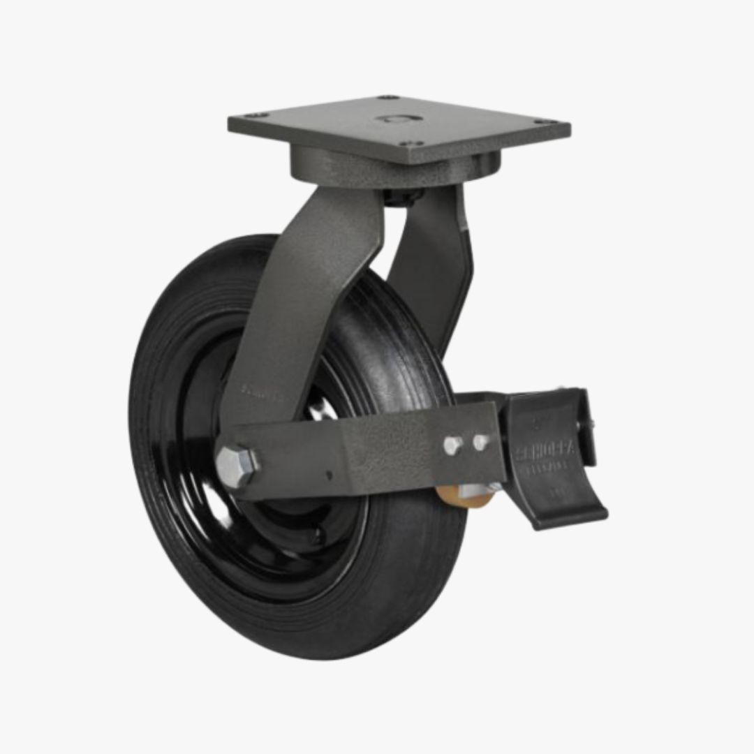 Produzidas com aro de borracha maciça e flanges (núcleo) em chapas de aço carbono estampadas. Não resistiu de manutenção, não furam, rolou com facilidade sob obstáculos, e são indicados para uso em pisos irregulares. As flanges são presas por parafusos que facilitam a montagem e substituição dos seus componentes, que podem ser fornecidos separadamente.