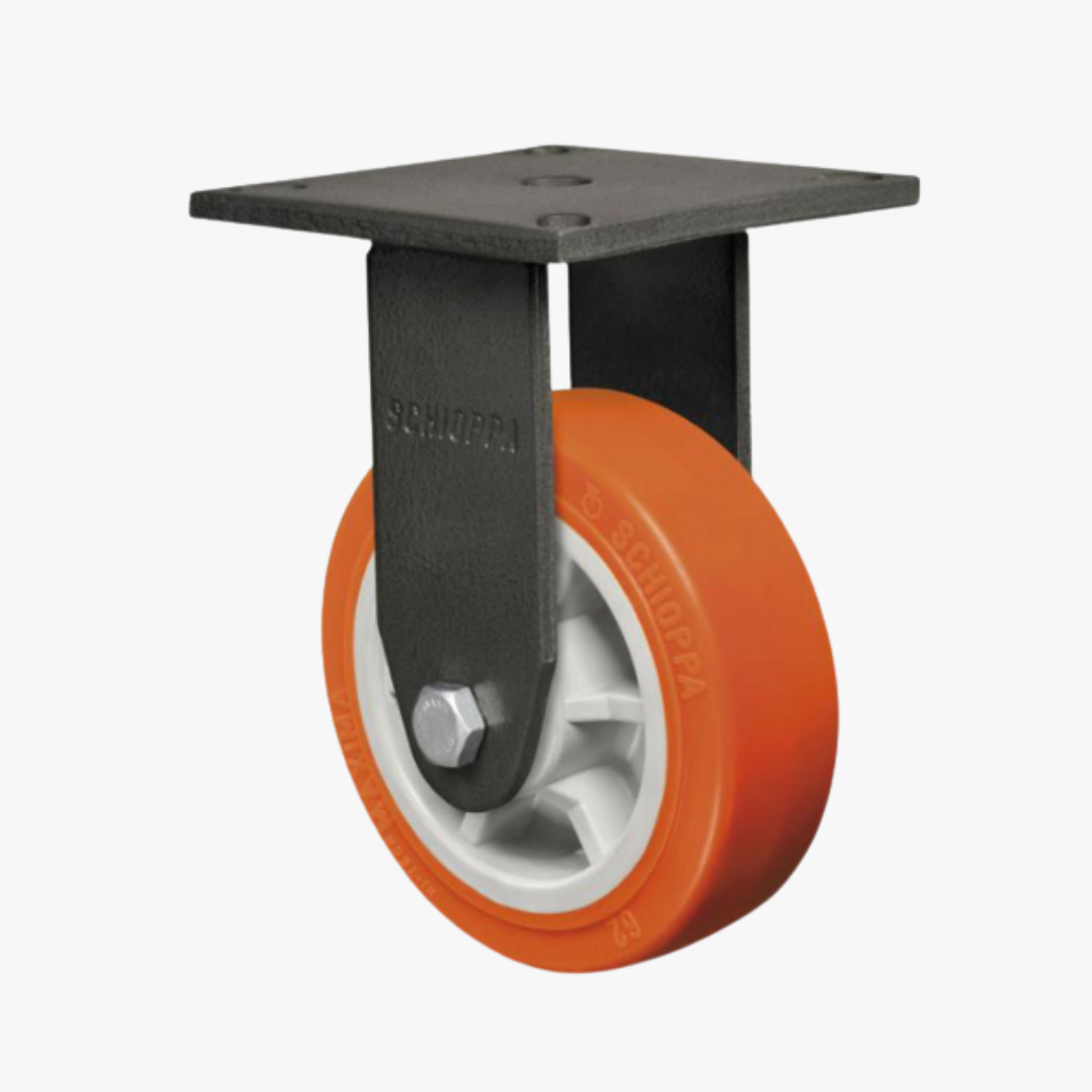 Roda UP: Poliuretano Termoplástico. Dureza: 90 Shore A. (-20ºC a +70ºC). Produzidas com revestimento em poliuretano termoplástico elastollan e núcleo em polipropileno copolímero recicláveis. Ideais para quem procura excelente capacidade de carga alinhada a uma ótima proteção do piso com baixo ruído no deslocamento, proporcionam excelente resistência a abrasão e impactos. Resistentes a graxas, óleos minerais e alguns ácidos. A velocidade de trabalho indicada é até 4km/h.
