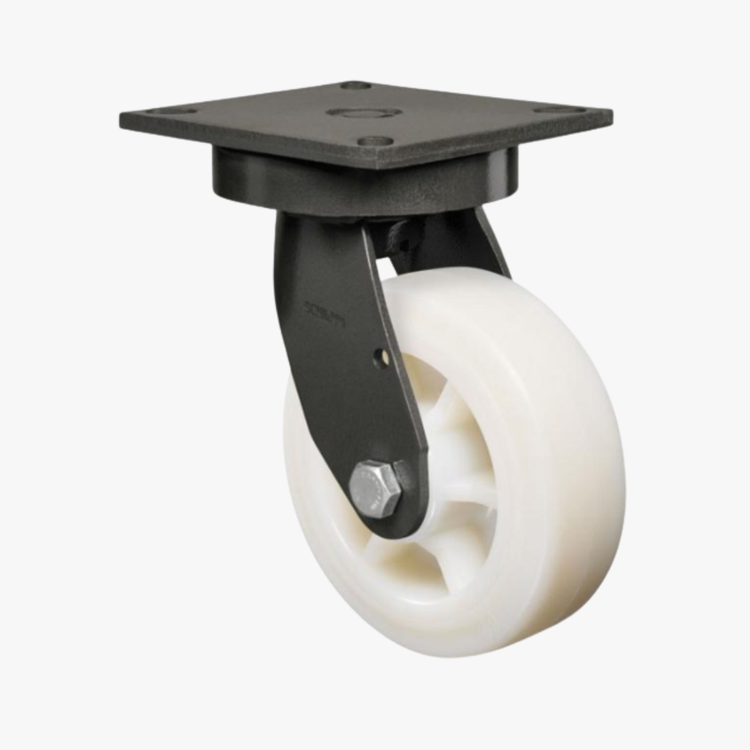 Roda NT: Nylon Técnico. Dureza: 75 Shore D. (-40ºC a +110ºC). Produzidas com revestimento e núcleo em nylon poliamida 6.0 de alta qualidade. São leves e possuem ótima resistência mecânica, rodam com muita facilidade exigindo menor esforço para manobras e movimentação. Ideais para aplicações em ambientes úmidos, são resistente as graxas, óleos, sais e alguns tipos de ácidos. Fabricadas com material reciclável. A velocidade de trabalho indicada é até 4km/h.
