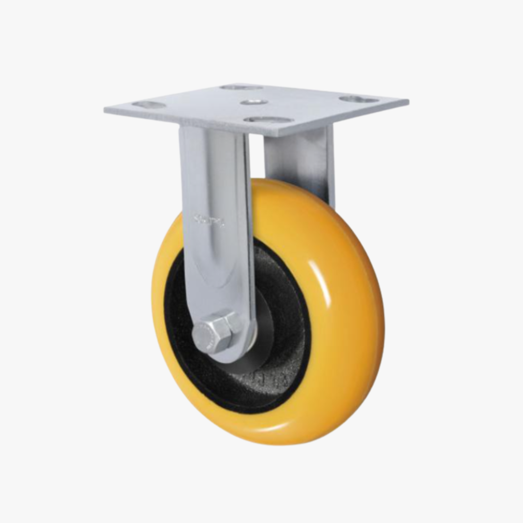 Roda BC - Poliuretano Moldado - Round. Dureza: 90 Shore A. (-40ºC a +80ºC). Produzidas com revestimento em poliuretano moldado e núcleo em ferro fundido cinzento. O perfil arredondado da face rodante proporciona redução da área de contato com o piso, facilidade para movimentação e manobras, diminuindo o esforço de manuseio e o nível de ruído no deslocamento. Proporciona durabilidade superior por ter maior camada de poliuretano do que as rodas convencionais. Possuem excelente resistência a abrasão, a impactos, a intempéries e a produtos químicos como graxas, óleos, sais e solventes. Podem ser utilizadas a uma velocidade de até 4km/h.