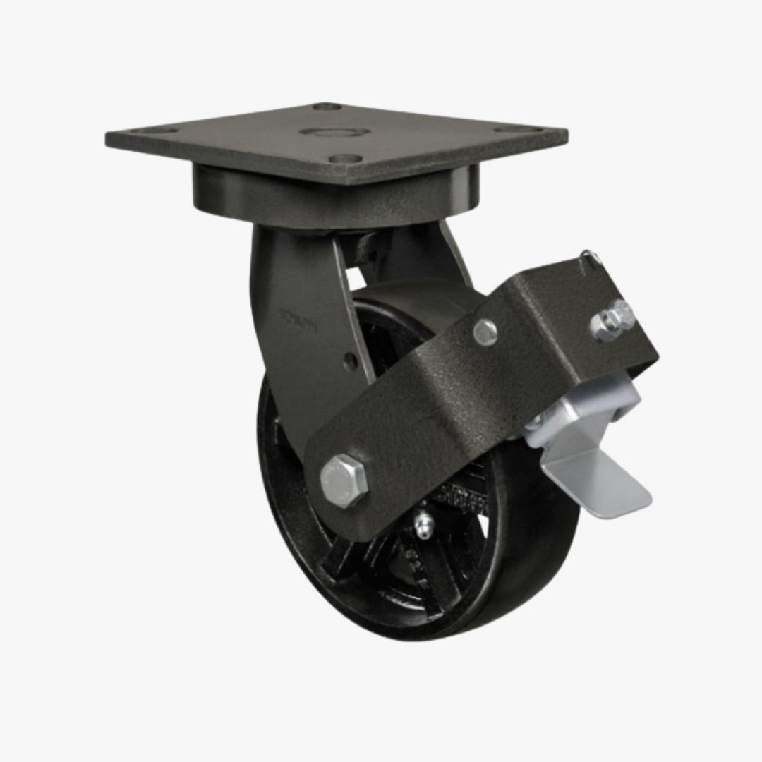 Roda F: Ferro Fundido. Dureza: 160 Brinell. (-40 a +400ºC). Produzidas com ferro fundido cinzento, rodam com muita facilidade e proporcionam grande redução do esforço de movimentação. São muito resistentes e suportam cargas e temperaturas elevadas. Não são indicadas para a utilização quando o nível de ruídos e a conservação do piso são necessários.