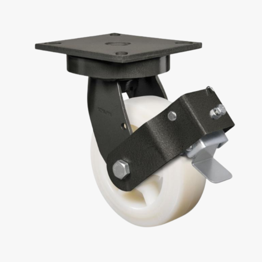 Roda NT: Nylon Técnico. Dureza: 75 Shore D. (-40ºC a +110ºC) . Produzidas com revestimento e núcleo em nylon poliamida 6.0 de alta qualidade. São leves e possuem ótima resistência mecânica, rodam com muita facilidade exigindo menor esforço para manobras e movimentação. Ideais para aplicações em ambientes úmidos, são resistente as graxas, óleos, sais e alguns tipos de ácidos. Fabricadas com material reciclável. A velocidade de trabalho indicada é até 4km/h.
