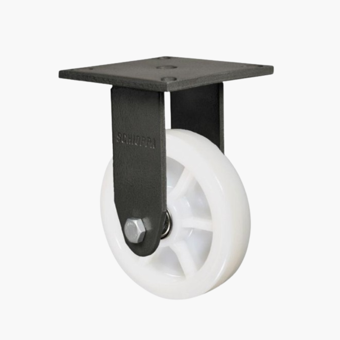 Roda NT: Nylon Técnico. Dureza: 75 Shore D. (-40ºC a +110ºC). Produzidas com revestimento e núcleo em nylon poliamida 6.0 de alta qualidade. São leves e possuem ótima resistência mecânica, rodam com muita facilidade exigindo menor esforço para manobras e movimentação. Ideais para aplicações em ambientes úmidos, são resistente as graxas, óleos, sais e alguns tipos de ácidos. Fabricadas com material reciclável. A velocidade de trabalho indicada é até 4km/h.