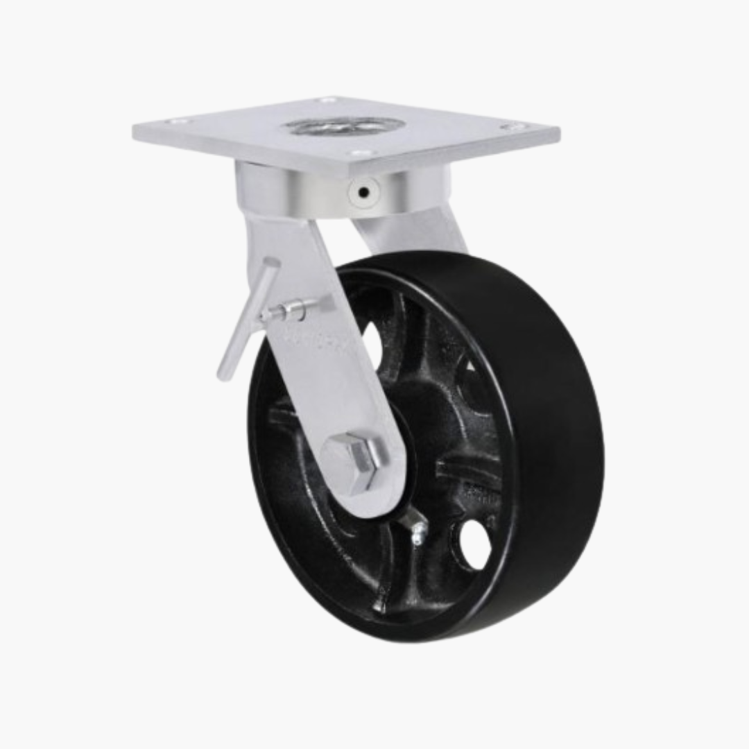 Roda F: Ferro Fundido. Dureza: 160 Brinell. (-40 a +400ºC). Produzidas com ferro fundido cinzento, rodam com muita facilidade e proporcionam grande redução do esforço de movimentação. São muito resistentes e suportam cargas e temperaturas elevadas. Não são indicadas para a utilização quando o nível de ruídos e a conservação do piso são necessários.