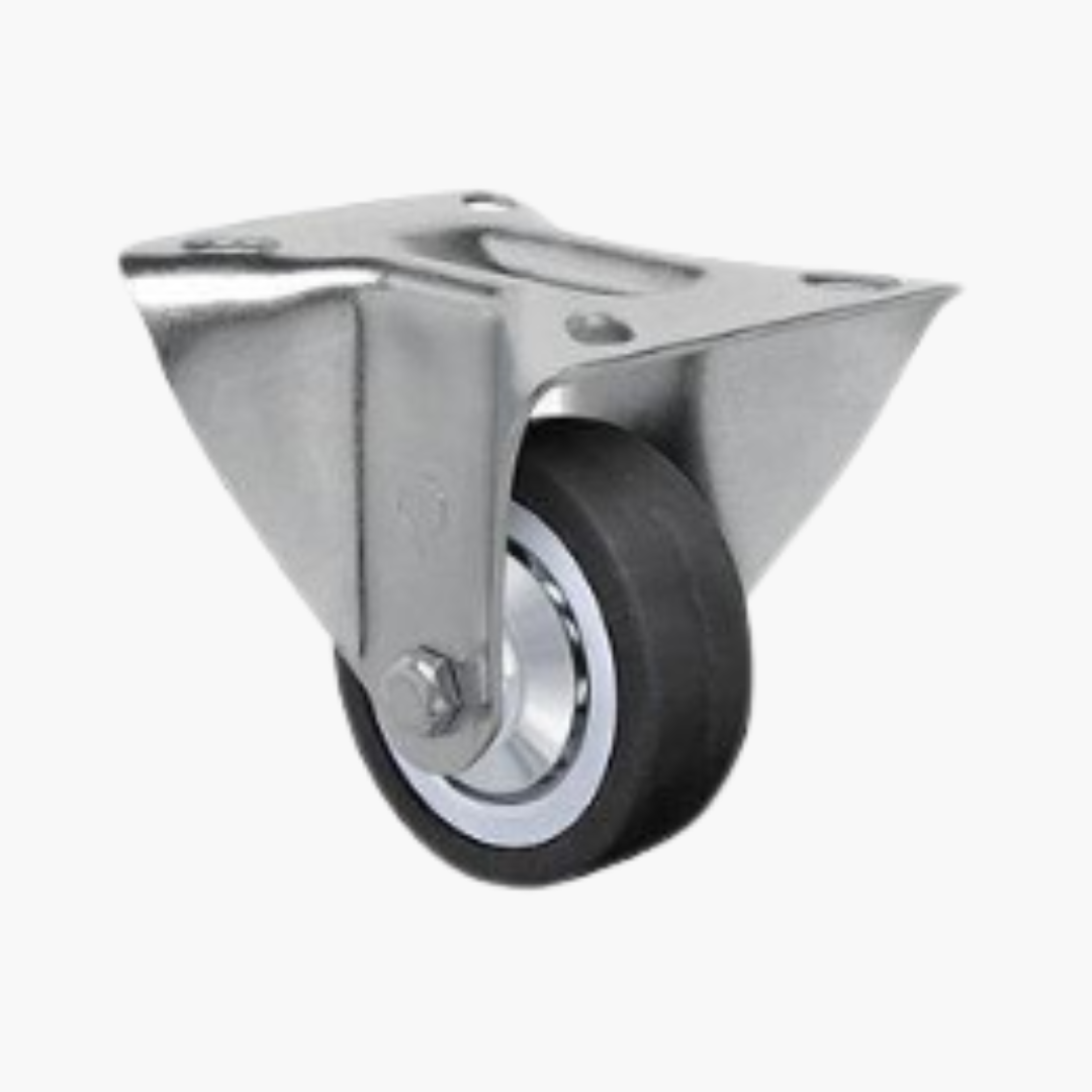 Roda BD: Borracha Moldada com Núcleo em Chapa Estampada. Dureza: 80 Shore A. (-20ºC a +70ºC). Produzidas com aro de borracha maciço, com núcleo em chapas de aço carbono estampado, com acabamento de zincado. São leves e resistentes, tem rodagem macia e silenciosa, e são indicadas para serviços leves em pisos em bom estado. A velocidade de trabalho indicada é até 4 km/h.
