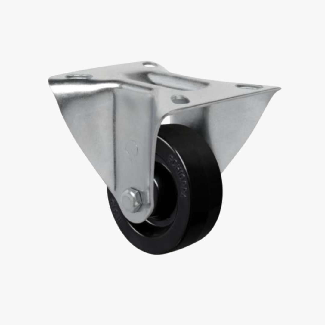 Roda TM: Termic. Dureza: 90 Shore D. (0 a +200ºC). Fabricadas com resina fenólica (baquelite), moldadas sob alta pressão e calor. Indicadas para utilização em aplicações em ambientes com temperaturas elevadas. Possuem boas propriedades mecânicas, não deformam com carga estática, e rolam com facilidade. São resistentes a maioria dos produtos químicos.