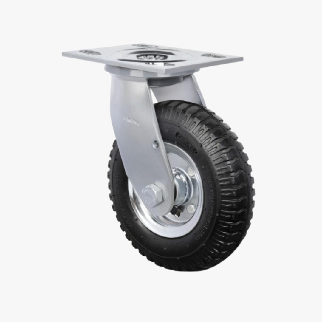 Fabricadas com pneu e câmara de ar, com núcleo em chapas de aço carbono estampado e acabamento zincado. Indicadas para aplicações em pisos irregulares onde é necessário facilidade de movimentação e amortecimento dos impactos e vibrações. Proporcionam fácil manutenção e seus componentes podem ser fornecidos separadamente. A velocidade de trabalho indicada é até 4km/h.
